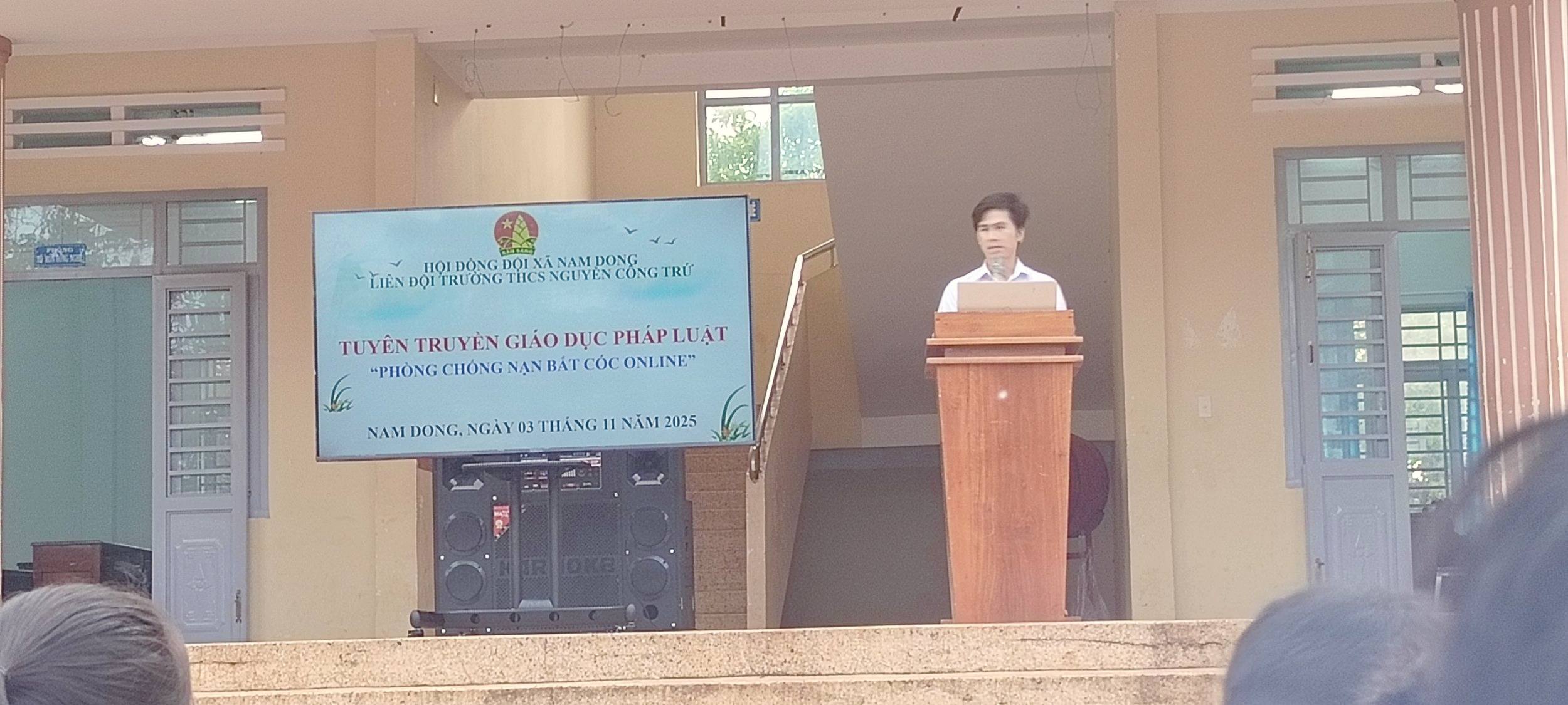 🗓 Ngày 03/11/2025 Liên đội Trường THCS Nguyễn Công Trứ – xã Nam Dong đã tổ chức TUYÊN TRUYỀN GIÁO DỤC PHÁP LUẬT– “PHÒNG CHỐNG NẠN BẮT CÓC ONLINE” – một hoạt động ngoại khóa thiết thực, ý nghĩa.